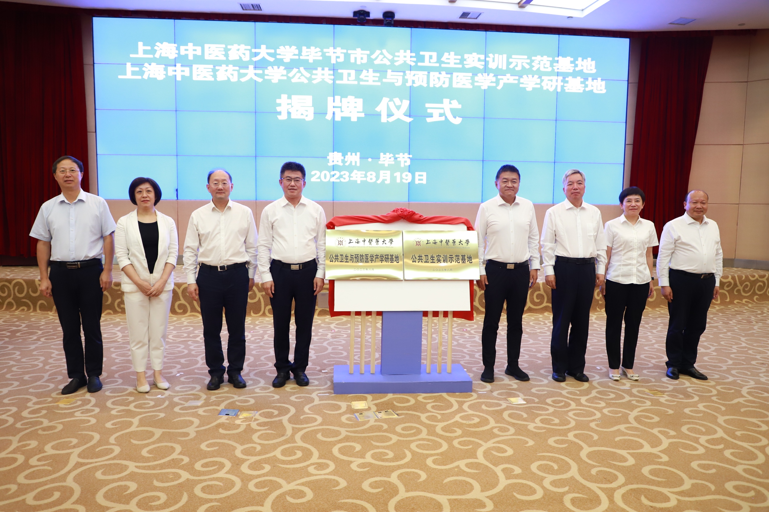会上,刘艳、王拥军、万艳、毕节市中医院党委书记张海共同为上海中医药大学毕节中医药研究院揭牌。王拥军、毕节市卫生健康局局长陈文智共同为上海中医药大学公共卫生与预防医学产学研基地、上海中医药大学毕节市公共卫生实训示范基地揭牌。