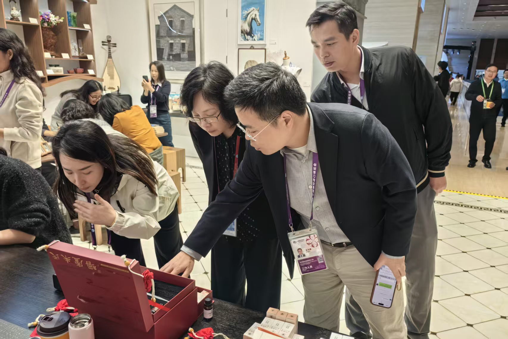 孟煜一行为“小叶子”代表送上慰问信,并走访新闻中心“中医服务点”与“非遗客厅”,慰问我校附属医院医务工作者。(团委)