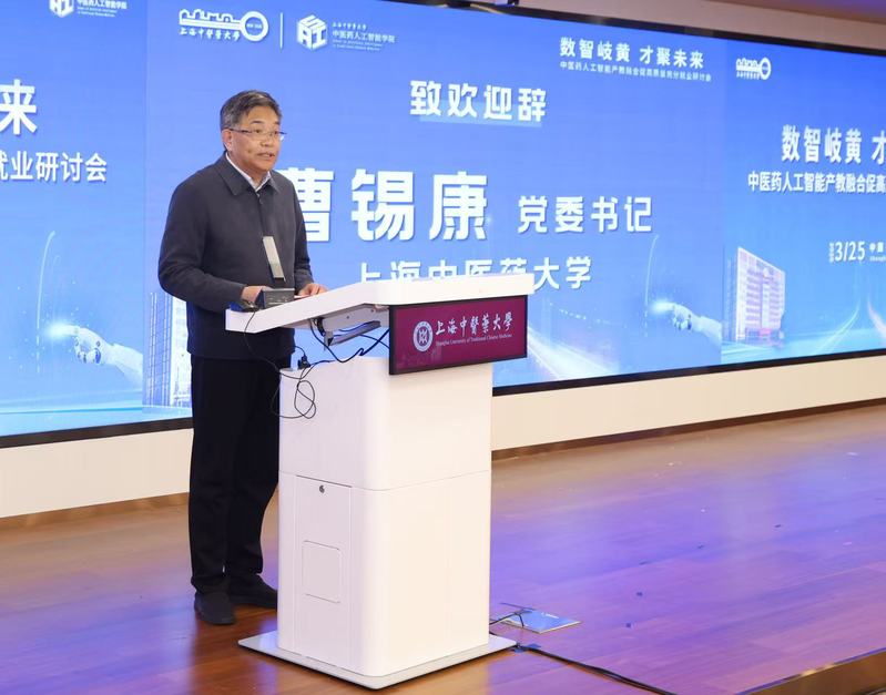 为进一步深化产教融合,精准对接中医药人工智能产业人才需求,3月25日,上海中医药大学举办“数智岐黄·才聚未来——上海中医药大学中医药人工智能产教融合促高质量充分就业研讨会”。会议积极响应全国两会提出的“因地制宜发展新质生产力”和“深化人工智能+行动”号召,紧扣“十五五”规划布局,搭建校企深度对话、需求精准对接的高端平台,共商合作大计,共育时代英才。上海中医药大学党委书记曹锡康,党委副书记、副校长孟煜,副校长舒静、钟力炜,以及浦东新区就业促进中心副主任潘峰出席本次会议。